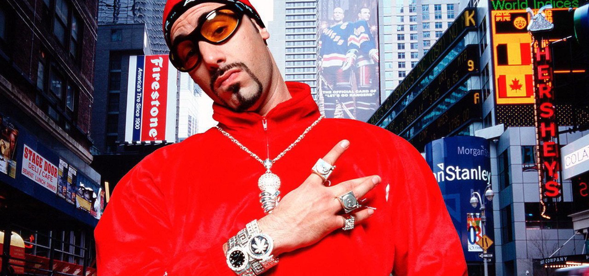Ali g wears lots of bling and conspicuously branded clothing (particularly tommy hilfiger), and bruno is pretty materialistic.